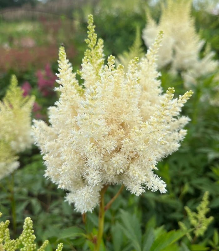 Астильба Вайс Глория – это изысканное и эффектное декоративное многолетнее растение, которое завоевало популярность благодаря своей элегантной форме, насыщенной белой окраске и универсальности в ландшафтном дизайне. Этот сорт отличается крупными, пышными соцветиями, состоящими из множества мелких цветков, собранных в плотные кисти. Высота растения достигает 60-80 см, что делает его заметным акцентом в саду. Астильба Вайс Глория идеально подходит для оформления тенистых уголков, бордюров, альпийских горок и миксбордеров, добавляя свежести и светлых оттенков в композиции.
