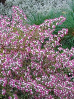 Астра кустарниковая Aqua Compact – компактный, но выразительный сорт, созданный для оживления осеннего сада насыщенными тонами и структурной чёткостью. Высота куста около 30-35 см, ширина может достигать 50 см. Растение формирует плотную, полусферическую крону, которая сохраняет декоративность с весны до заморозков. Цветки – крупные для кустарниковой астры, диаметром до 4 см, окрашены в насыщенно-фиолетово-сиреневый цвет с яркой жёлтой серединкой. Цветение начинается с конца августа и продолжается до поздней осени, даже при первых заморозках.