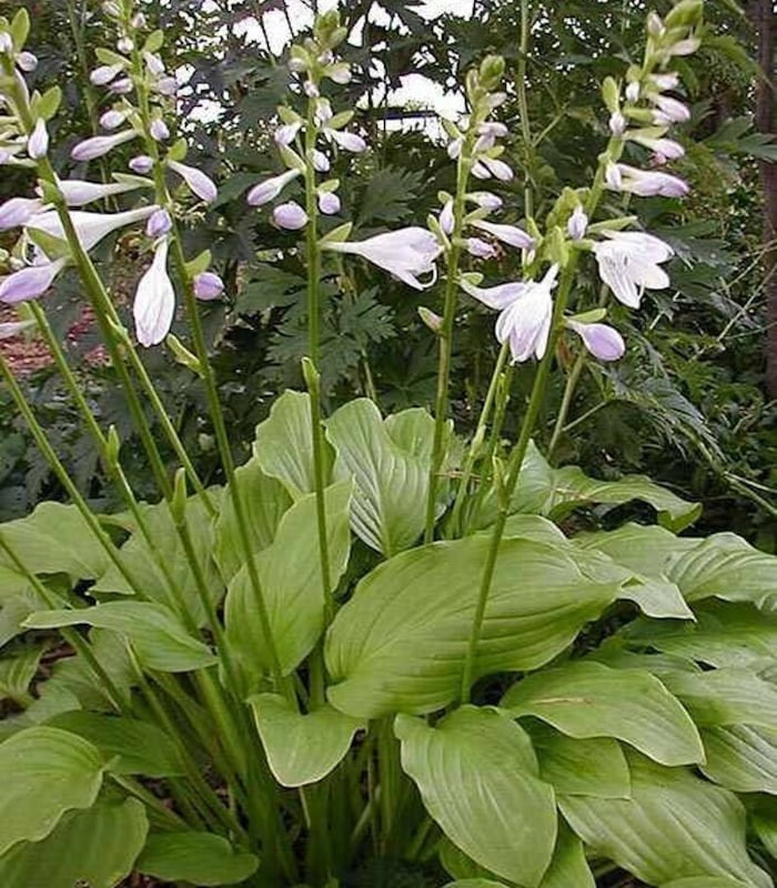 Хоста Ханибеллз – изящный сорт многолетнего травянистого растения из семейства Спаржевых, выделяющийся плотной текстурой листвы, устойчивостью к теневым условиям и эффектным цветением. Высота взрослого куста составляет 60-65 см, диаметр розетки – до 80 см. Листья крупные, овально-сердцевидные, плотные, с гладкой поверхностью и выраженными жилками. Окраска – насыщенно-зелёная с лёгким сизым налётом, хорошо сохраняется в течение всего сезона. Главной декоративной особенностью сорта являются цветки – крупные, белые, ароматные, собраны в пышные соцветия, поднимающиеся на длинных цветоносах над розеткой в июле – августе.