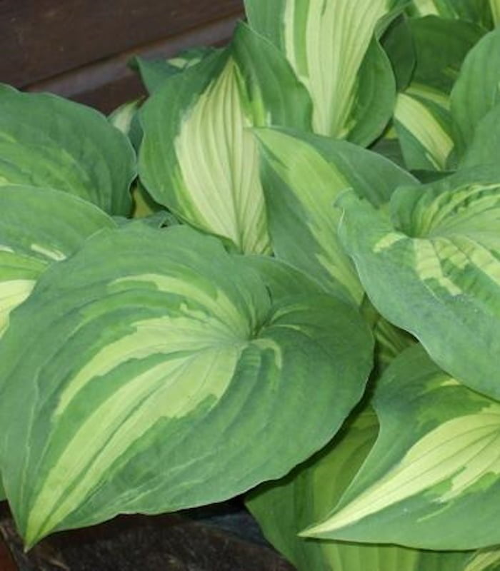 Хоста Элизабет Кэмпбэлл – эффектный сорт многолетнего растения из семейства Спаржевых, выделяющийся крупной вариегатной листвой, мощной структурой куста и высокой декоративностью в затенённых зонах. Высота розетки достигает 45-50 см, диаметр взрослого растения – до 80–100 см. Листья овально-сердцевидные, слегка гофрированные, плотные, с матовой поверхностью и чёткой жилчатой текстурой. Основная окраска – светло-жёлтая с широкой тёмно-зелёной каймой, проявляющейся ярко и контрастно при мягком освещении. Цветение наступает в июле – августе, над кустом появляются цветоносы с нежными лавандовыми цветками.