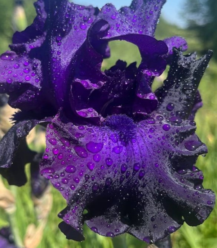 Эффектный и заметный ирис с довольно крупными чернильно-синими цветками и темно-синими бородками. Особую изысканность ему придают гофрированные края лепестков.