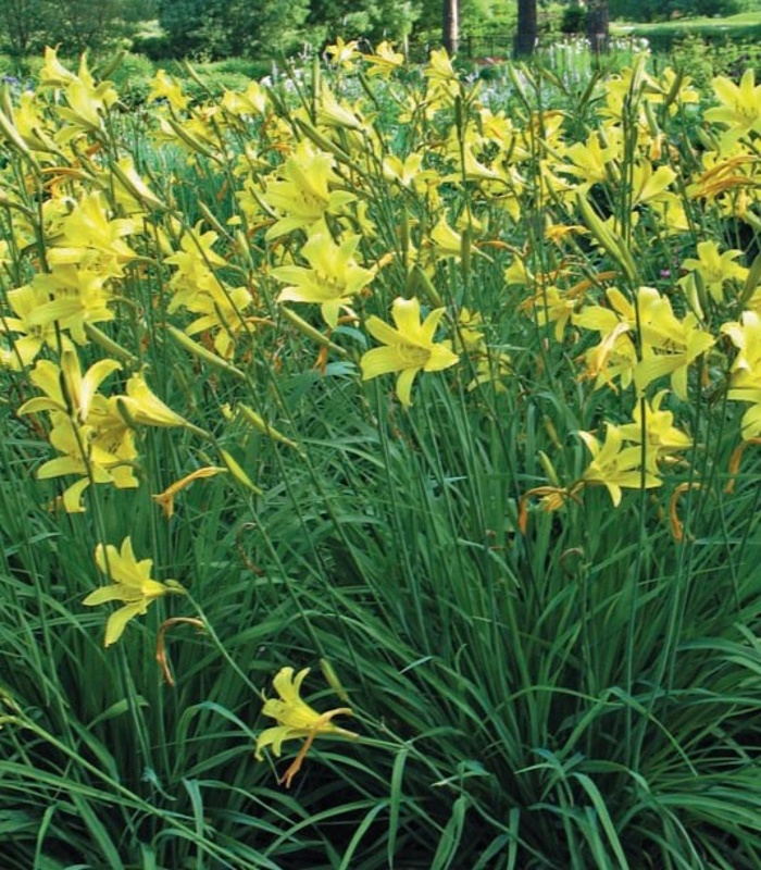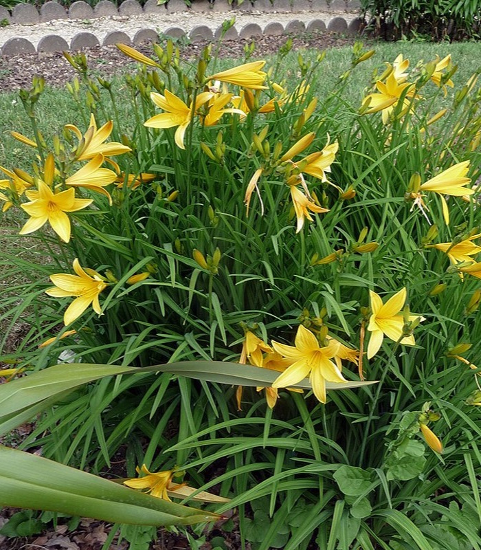 Неприхотливое, стабильно декоративное растение. Отличается ранним, обильным и продолжительным цветением. Формирует пышную кочку из ярко-зеленых злаковидных листьев. Цветки простые, насыщенно-желтой окраски, обладают приятным ароматом, очень эффектно смотрятся на фоне сочной зелени. Подойдет для садов в природном стиле, прекрасно будет сочетаться с декоративными злаками и другими цветущими многолетниками.