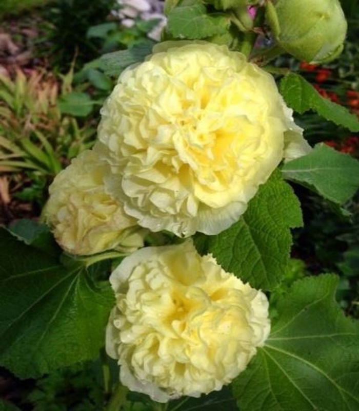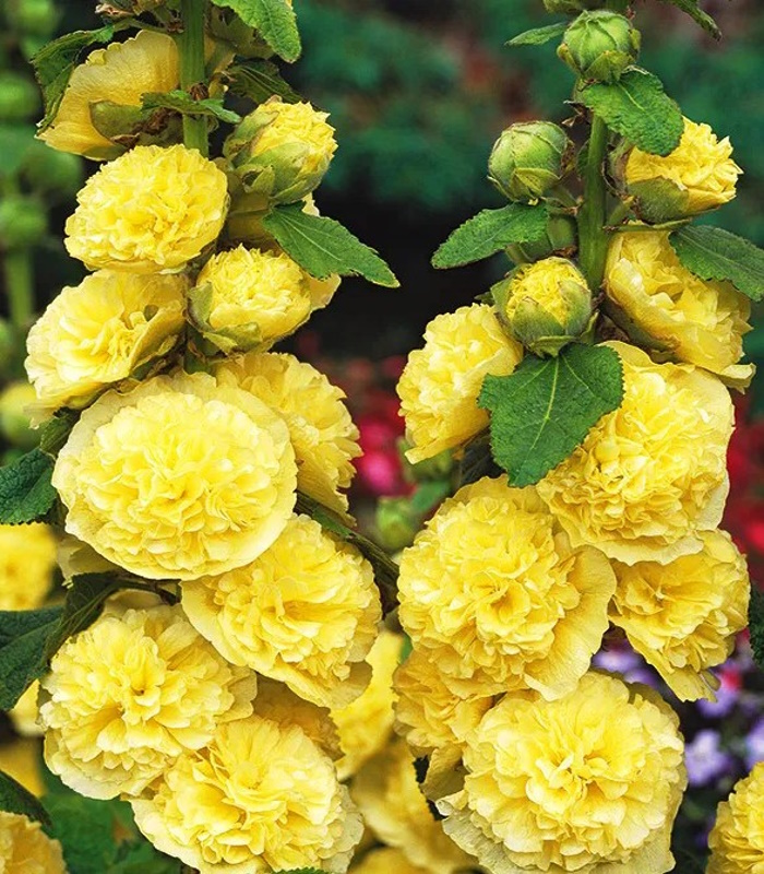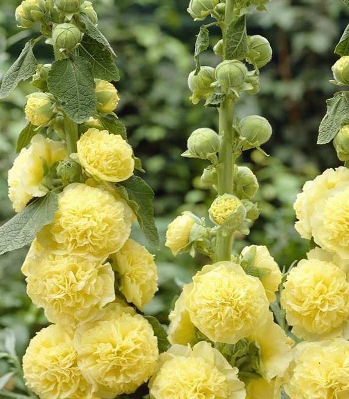 Эффектный сорт мальвы с очень крупными махровыми цветками светлой лимонно-желтой окраски, собранными в пышные вертикальные соцветия на прочных стеблях. Засухоустойчивое неприхотливое растение, отличающееся продолжительным и обильным цветением. Прекрасно будет смотреться в групповых посадках, добавляя вертикальный акцент в цветниках.