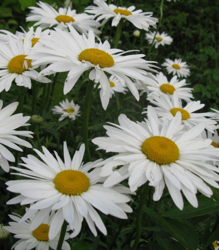 Очень красивый срезочный сорт с крупными белыми соцветиями, форма которых напоминает герберу. Достигает в высоту 60-80см. Садоводы по достоинству оценили неприхотливость этого нивяника – растет на грунтах любого состава, хорошо переносит кратковременную засуху, практически не болеет и не повреждается вредителями. Этот сорт отличается обильным и продолжительным цветением, которое длится не менее 2 месяцев. Соцветия очень крупные, в диаметре до 9-12см. Цветоносы прочные, хорошо стоит в срезке.