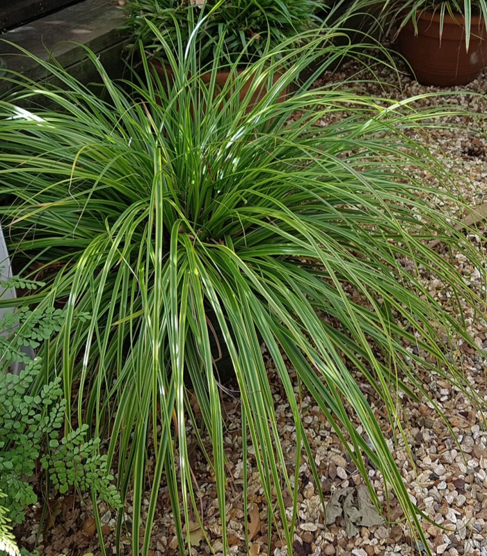 Осока охименская Эверлайм – вечнозелёный декоративный многолетник, отличающийся элегантной формой куста и контрастной окраской листвы. Сорт формирует компактную кочку высотой около 15-20 см и шириной до 50 см. Листья узкие, длинные, насыщенного зелёного цвета с ярко выраженными светло-зелёными или лаймовыми краями. Благодаря такой окраске растение выглядит свежо и нарядно круглый год, не теряя декоративности даже зимой.