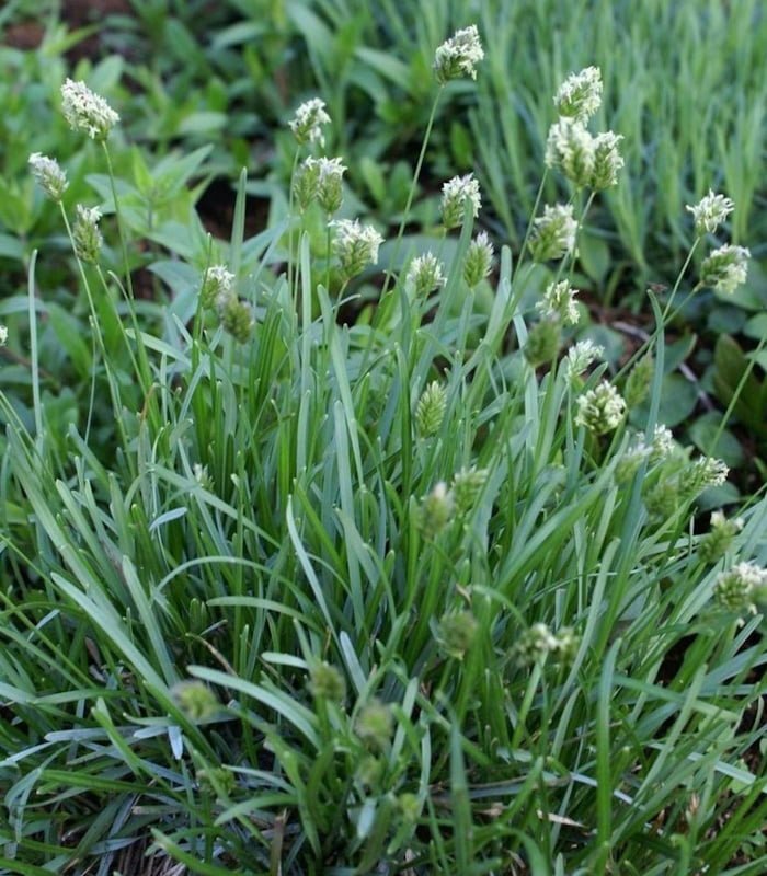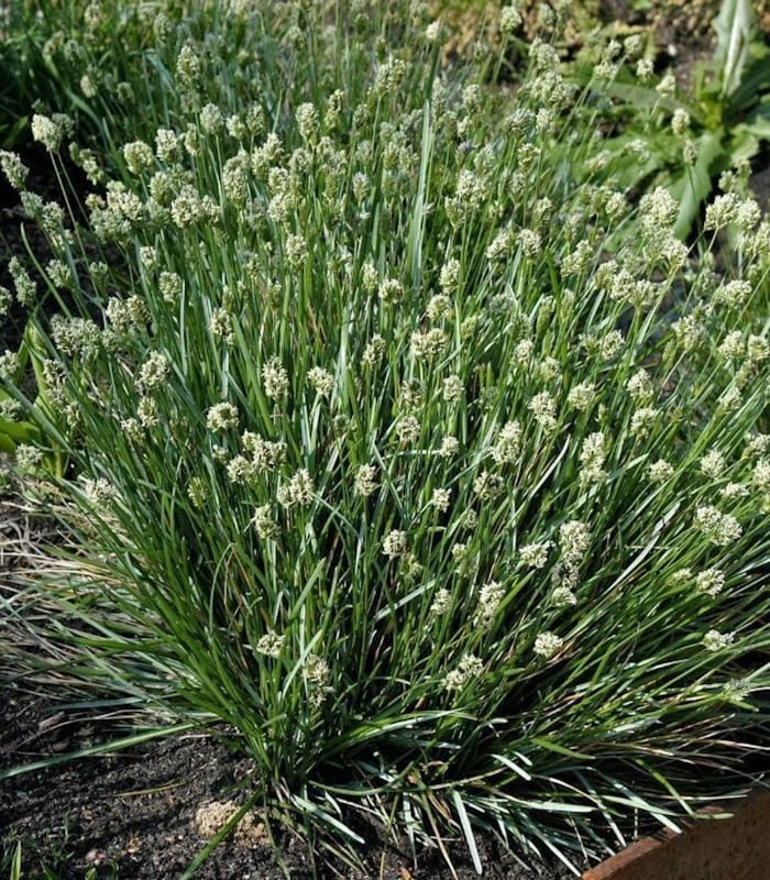 Сеслерия голубая – декоративный многолетний злак, отличающийся компактной формой и устойчивостью к неблагоприятным условиям. Растение формирует плотную кочку высотой 20-25 см и шириной до 30 см. Листья узкие, линейные, с характерным сизо-голубым оттенком, особенно ярко проявляющимся на солнечных участках. Нижняя сторона листа зелёная, верхняя – серебристо-серая, что создаёт эффект мерцания. Листва сохраняется круглый год, придавая растению вечнозелёный облик. Цветоносы тонкие, прямостоячие, несут овальные соцветия длиной до 3 см, кремово-жёлтого цвета, которые появляются в мае и сохраняются до июля. После цветения колоски приобретают бордово-зелёный оттенок, оставаясь декоративными до осени.