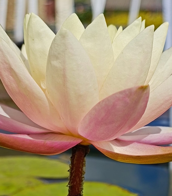 Крупный сорт с энергичным ростом и обильным цветением. Лепестки желто-персиковые, интенсивность и оттенок окраски может изменяться в зависимости от освещённости. Диаметр цветка до 18-20 см. Глубина посадки 40 — 100 см. Диаметр покрытия поверхности воды 1,3 — 1,8 м.кв.