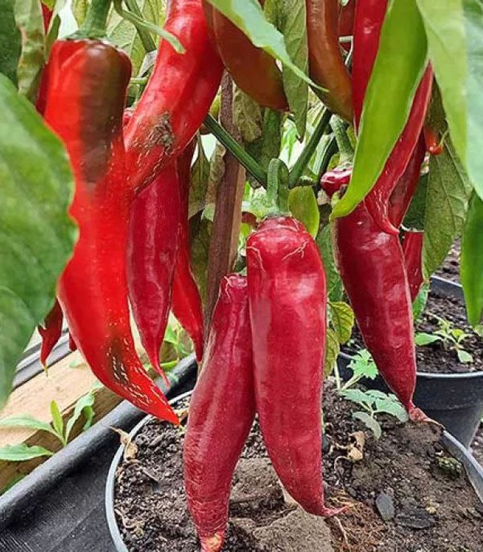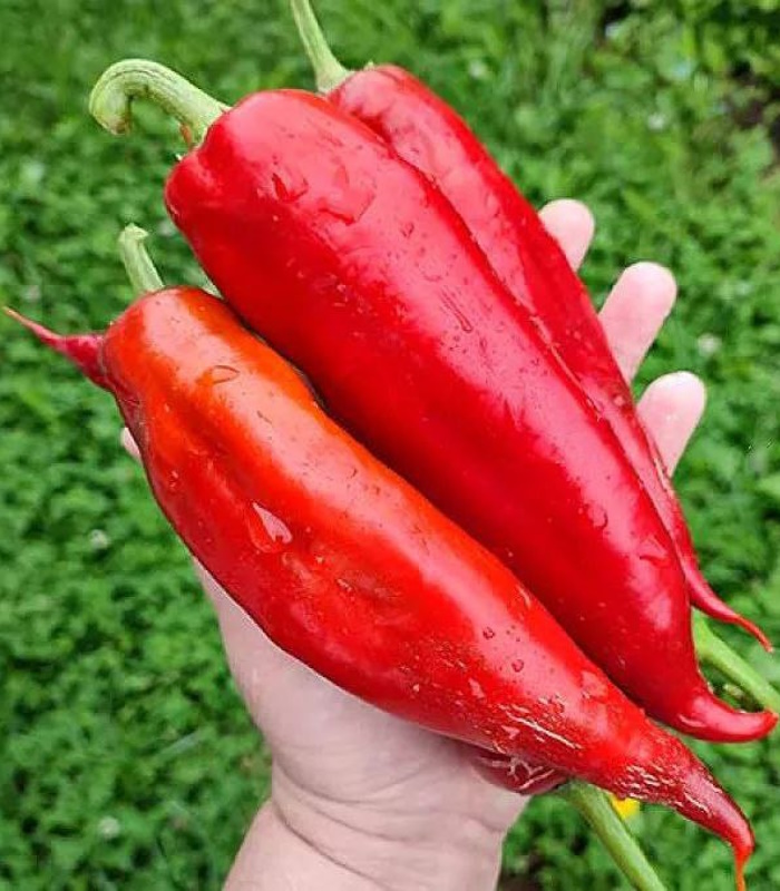 Острый! Среднерослый, ранний. Длинные крупные стрючки, до 25 см и больше. Темно-красные, яркие, дружное созревание на всем растении. Стенка толстая, мясистая. Для любого вида переработки, маринования, сушки, консервации. Острота средняя.
