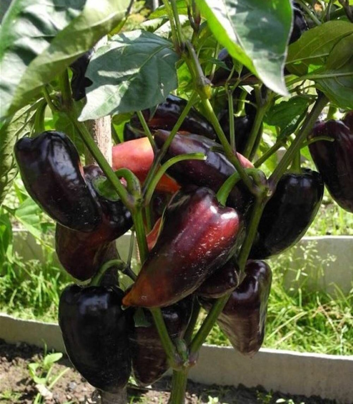 Высокоурожайный, среднеспелый сорт для выращивания в открытом грунте и парниках. Растение полураскидистое, высотой 50-60 см. Плоды пониклые, конусовидные, в технической спелости темно-фиолетовые, в биологической — темно-красные, глянцевые, массой 100 грамм, очень сочные, ароматные, сладкие. Очень высокая урожайность, устойчивость к непогоде, отличные вкусовые качества.
