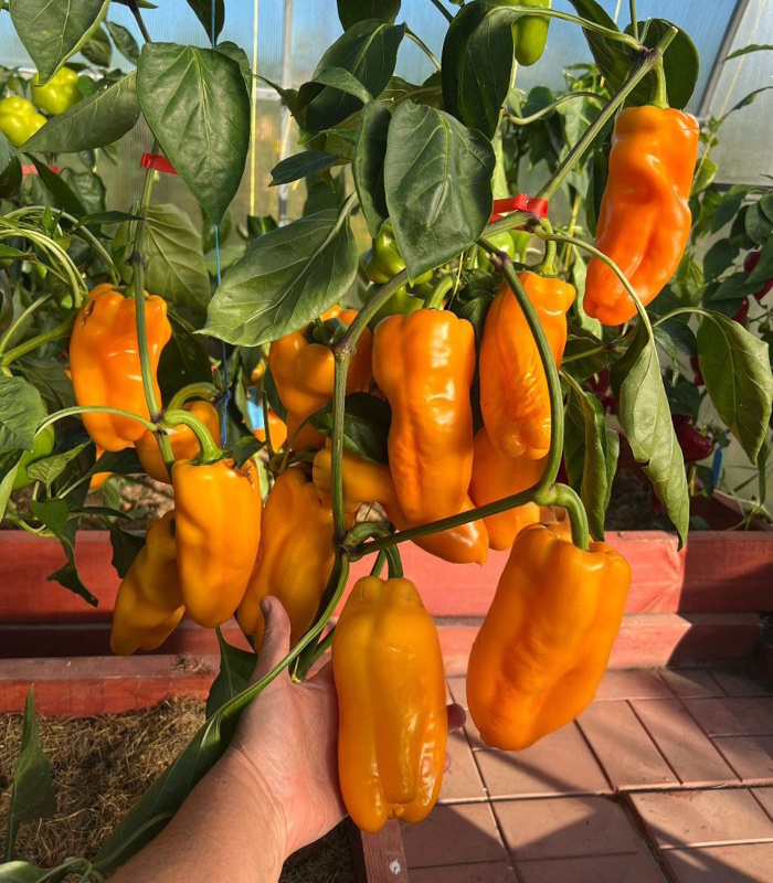 Плоды призмовидные, желтые, толстостенные, сочные, сладкие. Вес 200 грамм.