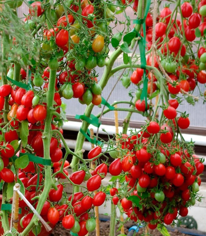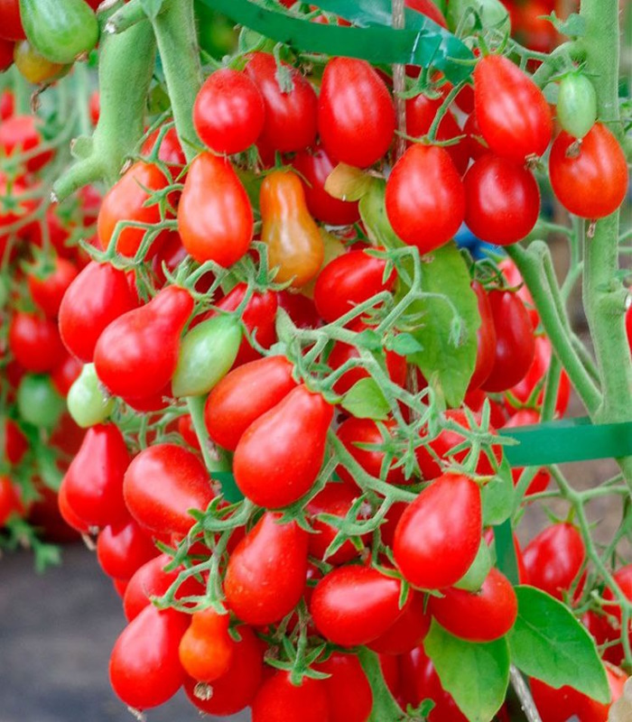 Удивительный, необычный, волшебный! Это все о нем – томате Монпансье. Сорт среднеранний, полудетерминантный, высотой около 160 см. Кисти очень сложные, напоминающие веер, каждая содержит 10-15 плодов! Красно-алые грушевидные томаты имеют массу 300-500 грамм. Вкус плодов сладкий, фруктовый. Сорт устойчив к основным болезням томатов. Формировать в 2 стебля.