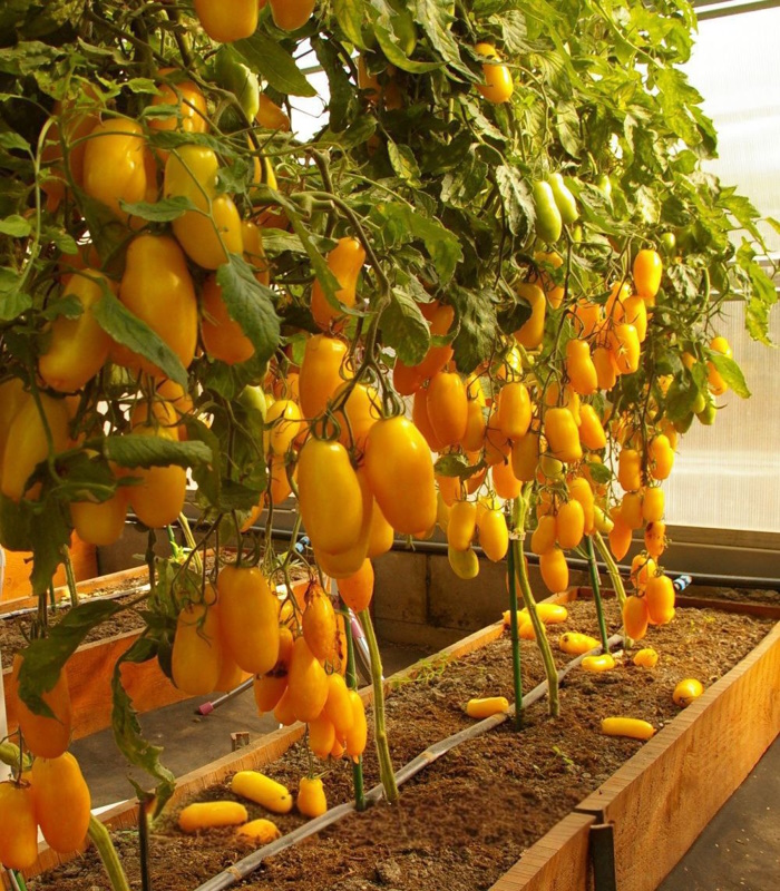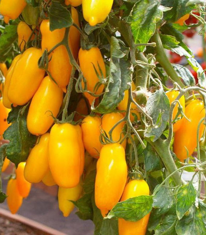 Индетерминантный, более 2 м. Среднеранний. Масса 120-220 грамм. Плоды необычной вытянутой формы с раздвоенным носиком, плотные, вкусные. Цвет ярко-желтый. На верхних кистях могут быть немного пустотелые. Сорт преимущественно салатного назначения или на пасту, соусы. Замечателен для вяления.
