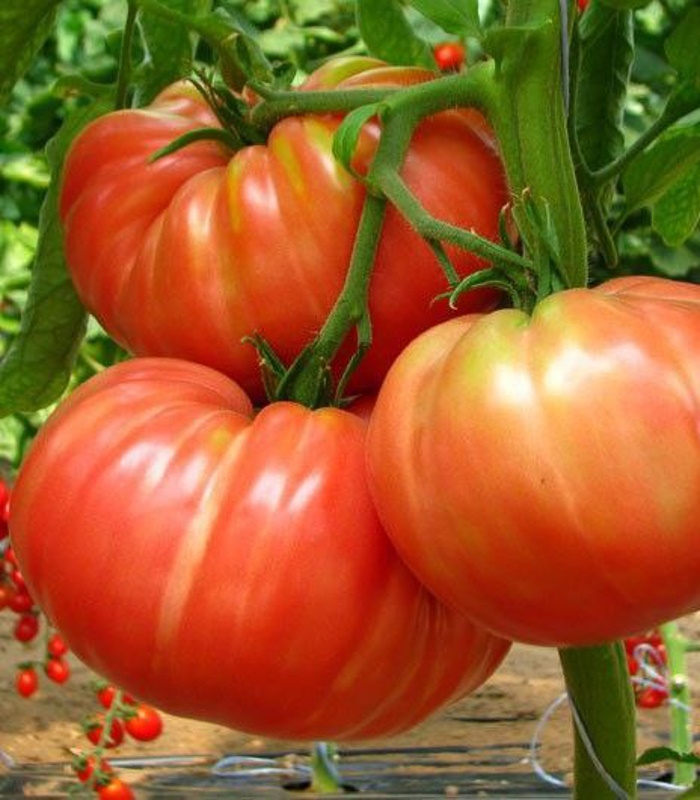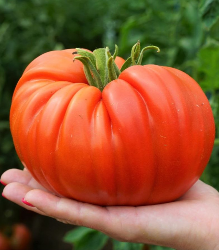 Индетерминантный, среднеспелый. Плоды сильно ребристые плоско-округлые, похожие на распустившийся цветок. Мясистый, сочный, вкусный. Масса 500-600 грамм, до 1 кг. и более. Цвет красный. Мякоть мясистая, плотная. Вкус классический, гармоничный, сладкий.